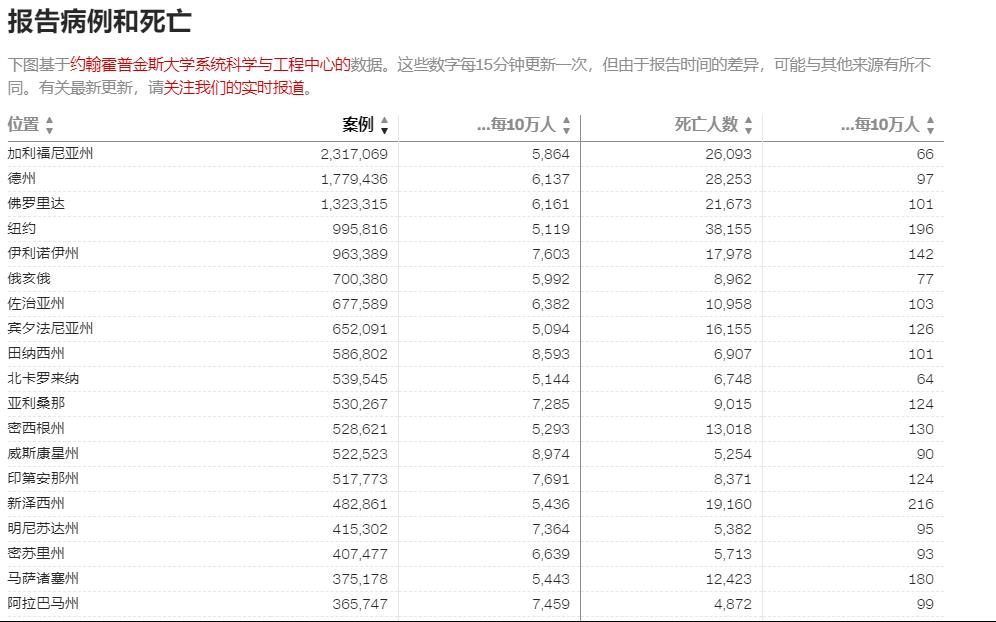 △由多至少,全美各州累计新冠肺炎确诊病例数(数据来源:美国约翰斯·霍普金斯大学)
