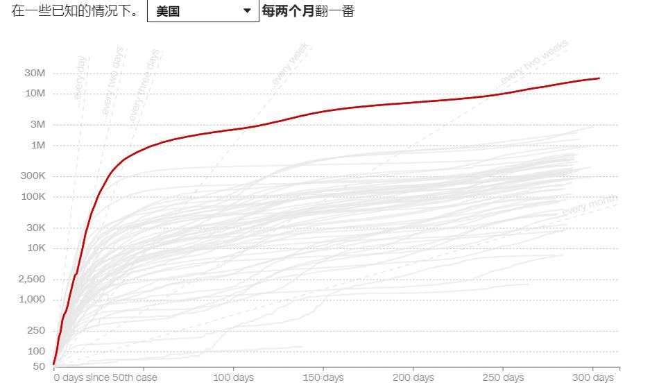 截至2021年1月1日下午,美国新冠肺炎确诊病例累计超过2008万例。按照官方统计,美国花了292天的时间达到第一千万例确诊病例,仅用53天,这一数字就翻了一番。