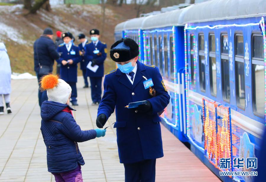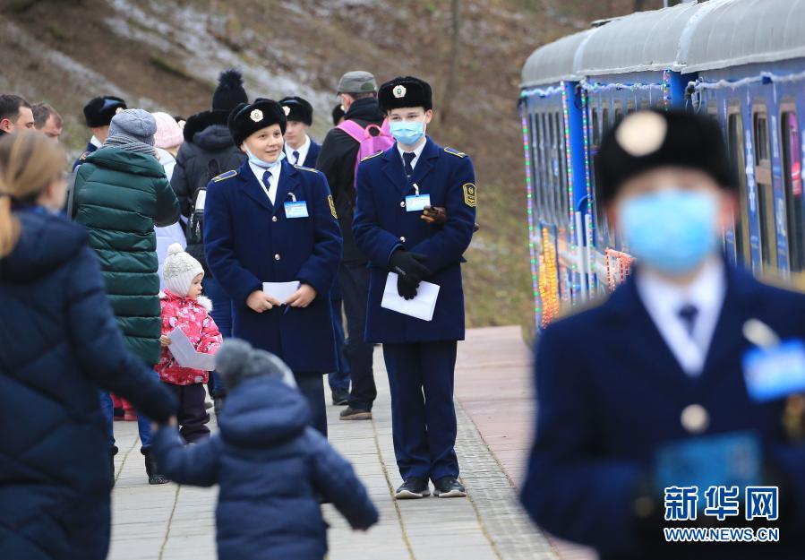 当日,位于明斯克的儿童铁路专门开行新年专列,营造新年气氛。该儿童铁路全长4.5公里,共设有三站,车站站长、列车员和司机等各工种均由少年儿童担任。