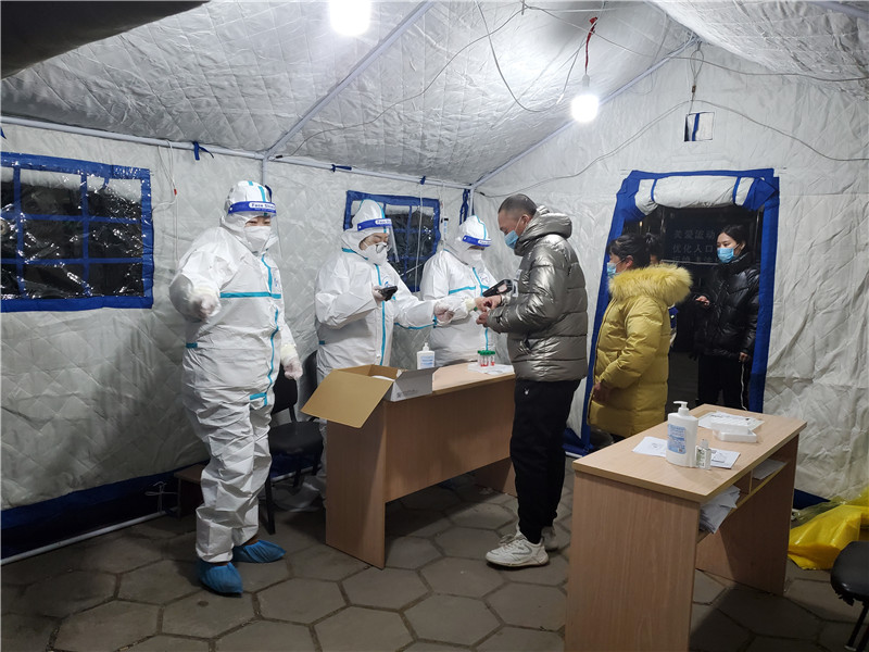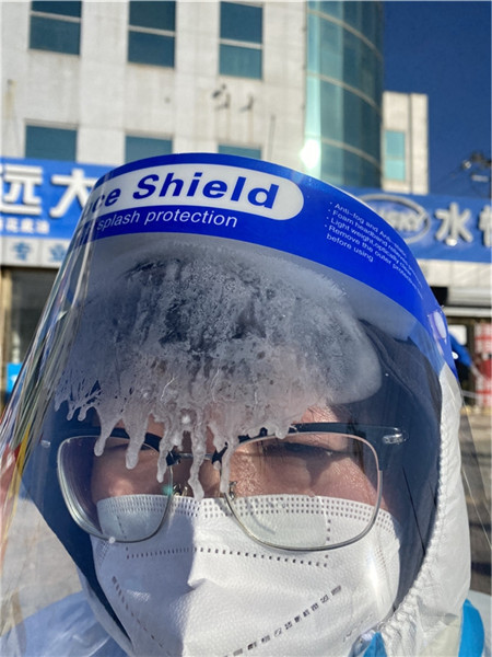 近一周来,北京降温明显,给每天穿着防护服在室外工作的工作人员带来了更大的考验。谢雪飞说,印象最深的是去年12月29日晚上。“做核酸检测之前那一天,也就是29日筹备那天,风特别大、天气特别冷,我们穿着防护服搭帐篷、干活。那么大的风,帐篷都差点刮跑了,虽然戴了手套,但是手都冻木了,我们还在那儿扶着帐篷,前后坚持了两个多小时,帐篷才弄好。虽然我们也有施工的,但是考虑到施工师傅的安全,就没让施工师傅进村。”