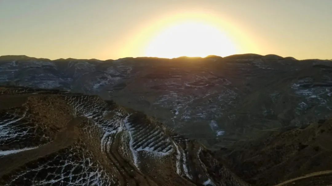 △青海阿什努乡若兰村,夕阳照在残雪的山坡