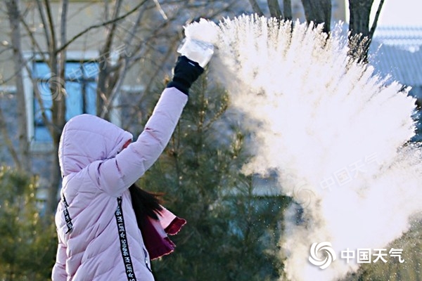 昨天北京天寒地冻,市民体验“泼水成冰”。(图/王晓)