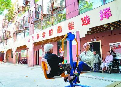北京丰台区康助护养院宛平城养老服务驿站,一位老人与工作人员在玩跳棋。新华社发
