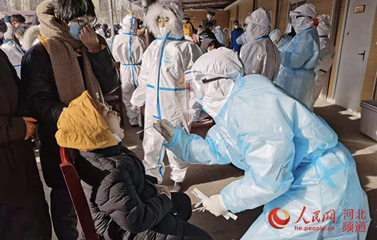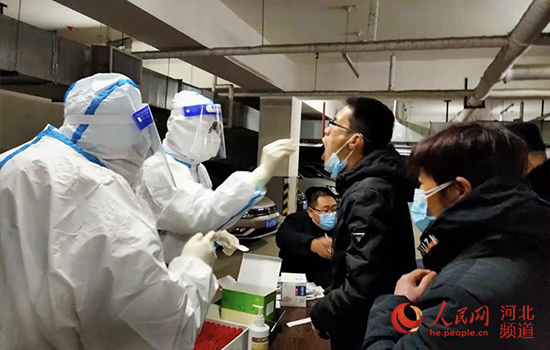 1月7日,石家庄鹿泉区安联青年城小区居民进行核酸检测。 人民网杨文娟摄