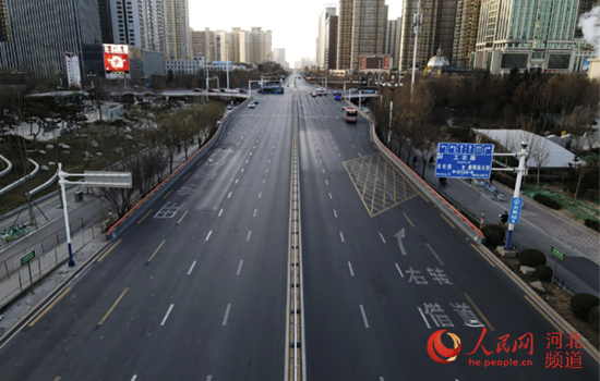 1月6日,石家庄市裕华路上车流量减少,人员流动得到有效控制。 杨磊涛摄
