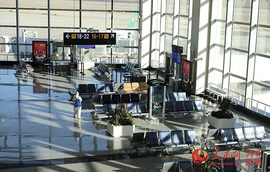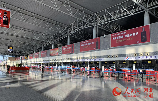 1月7日,石家庄机场多家航空公司取消航班,机场里不见了往日热闹的场景。 石家庄机场供图
