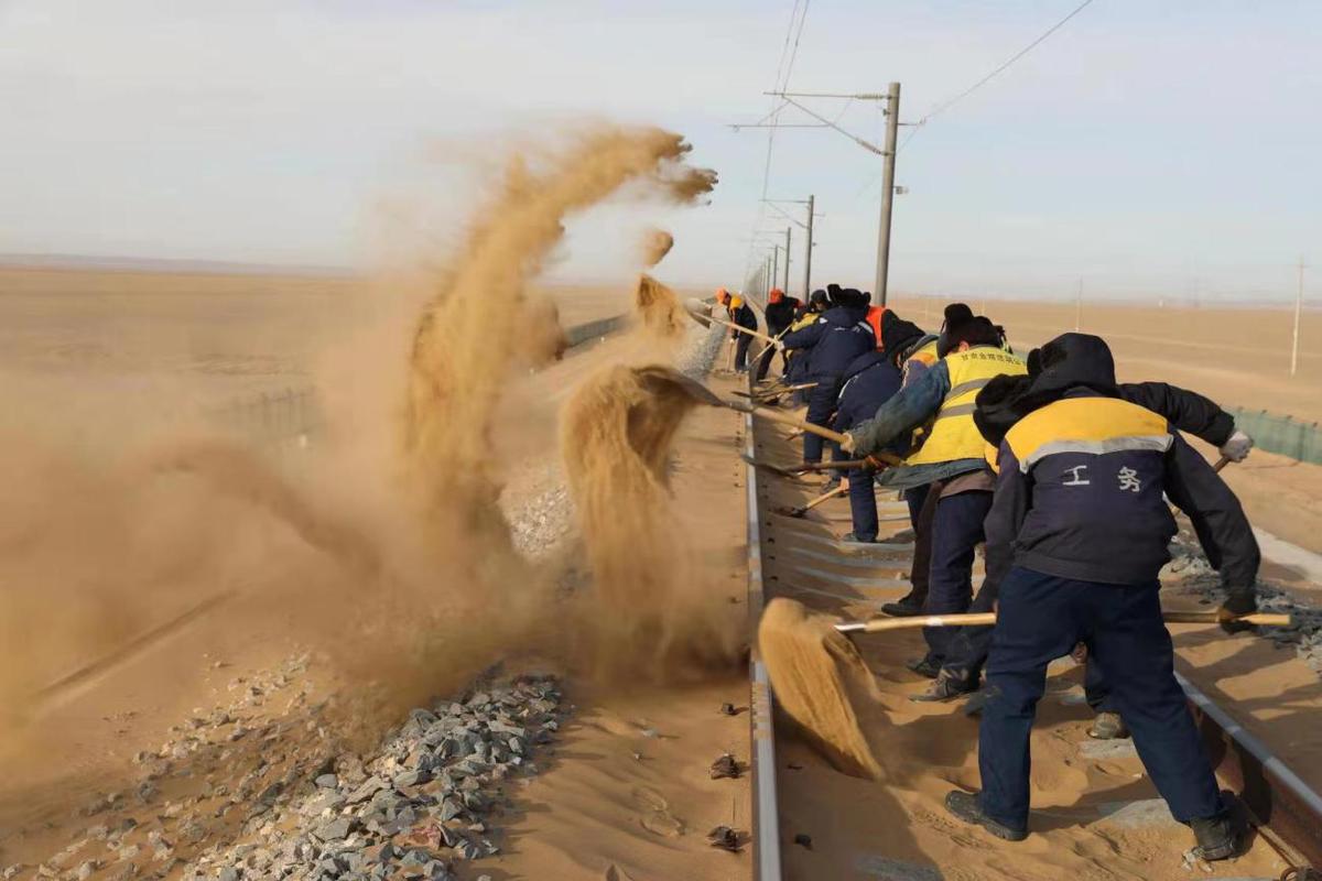 敦煌铁路于2019年12月开通运营,是兰新铁路和青藏铁路的重要连接线,也是沟通新疆、青海、甘肃和西藏四省区的一条最便捷的通道。把阳关站至沙山沟站之间12公里线路上的积沙及时清理出去,是嘉峪关工务段肃北线路维修工区14名职工的一项重要工作。
