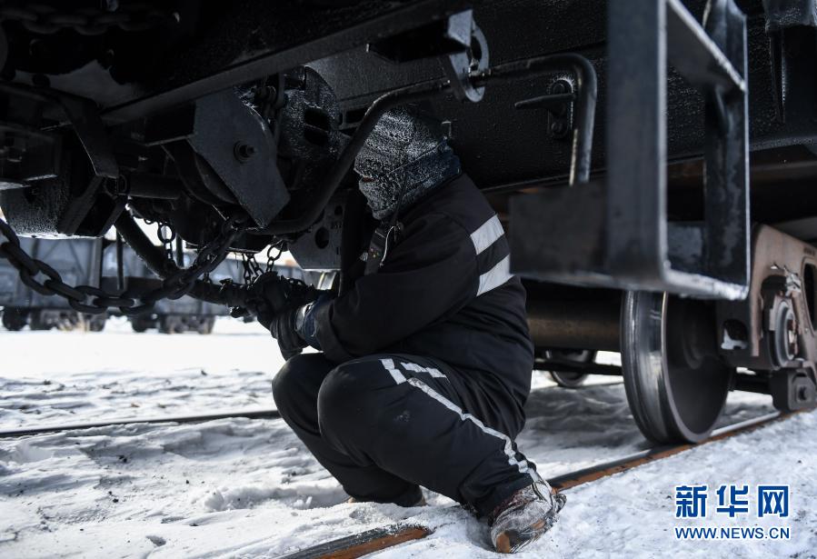 当日,内蒙古锡林郭勒盟锡林浩特市气温低至零下30摄氏度。中铁呼和浩特局集团有限公司锡林浩特站调车员在严寒中进行调车作业,每班室外作业时间长达7个小时。他们将一节节车厢重新编组,发向目的地,全力保障冬季列车运行畅通。