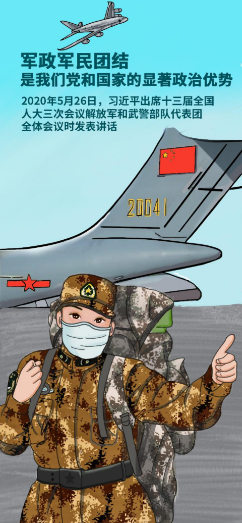 拥军优属、拥政爱民是中国共产党领导下我国军民的伟大创造,是我党我军的优良传统和显著政治优势。2020年,全军部队忠实践行人民军队根本宗旨,在抗击新冠肺炎疫情、防汛救灾等重大行动中听党指挥、闻令而动、勇挑重担,积极发挥突击队作用,为决胜全面建成小康社会、决战脱贫攻坚作出了重要贡献。