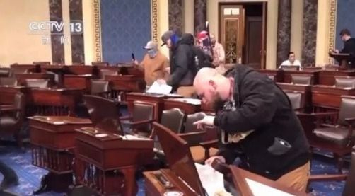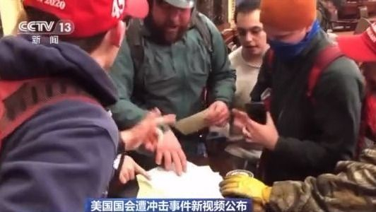 这段十多分钟的视频显示了大批抗议者冲入国会,进入大厦内的各个房间。抗议者还进入国会联席会议举办场所。