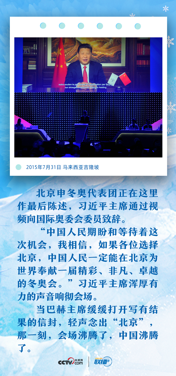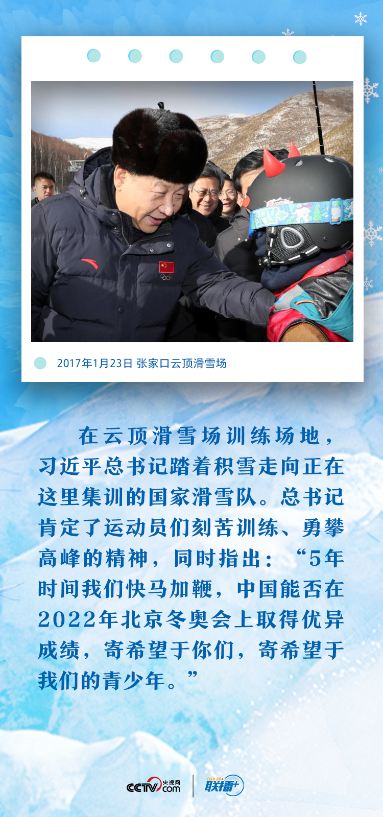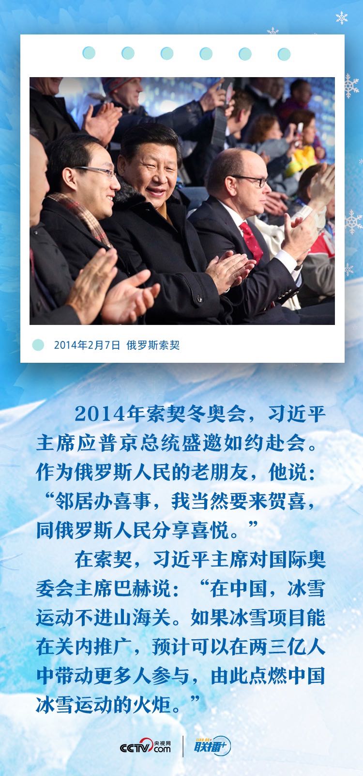 自2013年11月3日中国奥委会正式提出北京和张家口联合申办第24届冬奥会开始,习近平总书记始终关注着这一盛事,关心着中国冰雪运动。央视网《联播+》栏目特梳理总书记心系冬奥的七个微镜头,让我们从中感受总书记的“冬奥情缘”。