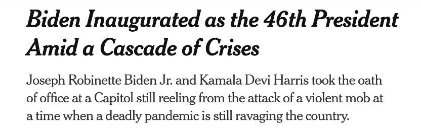 拜登在就职演讲中11次使用“团结”或“联合”这个词,他呼吁美国人抛开分歧,团结起来应对疫情、经济危机和种族主义。他说,“这是我们面临危机和挑战的历史性时刻,团结才是前进的道路。”