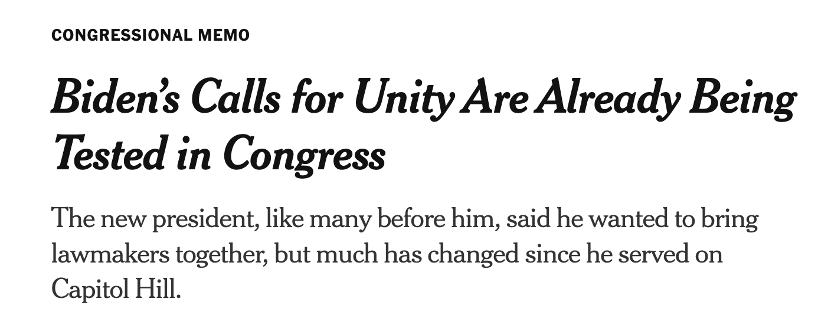 拜登对团结的呼吁已经开始在美国国会经受考验