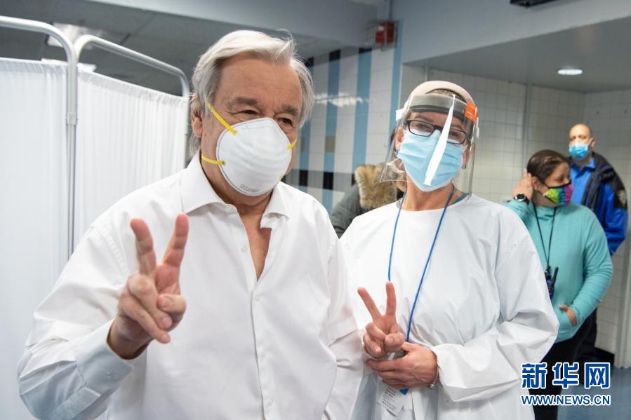 1月28日,联合国秘书长古特雷斯在美国纽约接种新冠疫苗。新华社发(联合国供图/埃瑟金德尔·德贝贝摄)