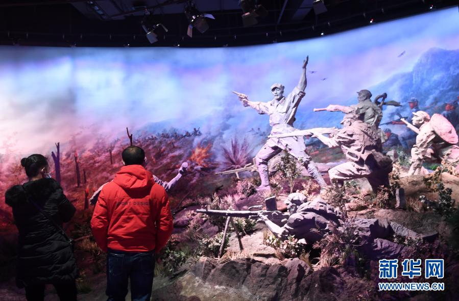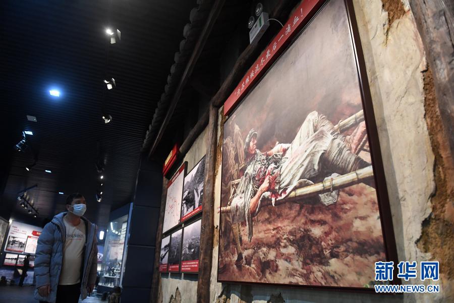 参观者在广西全州红军长征湘江战役纪念馆观看展览(2月3日摄)。新华社记者 陆波岸 摄