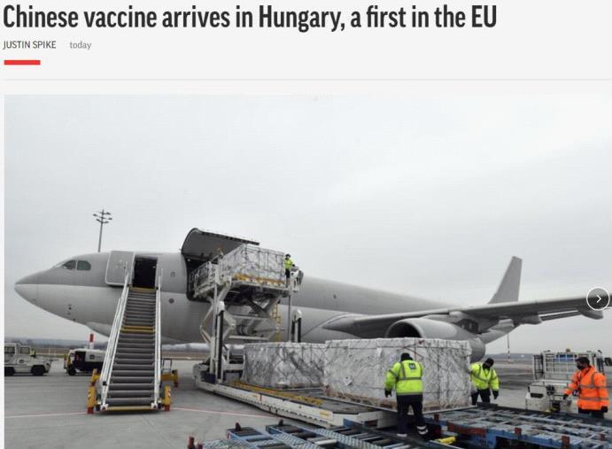 2月16日,中国国药集团生产的新冠灭活疫苗运抵匈牙利,匈牙利也成了第一个收到中国疫苗的欧盟国家。当天,中国疫苗抵达的消息占据了匈牙利各大媒体头条。