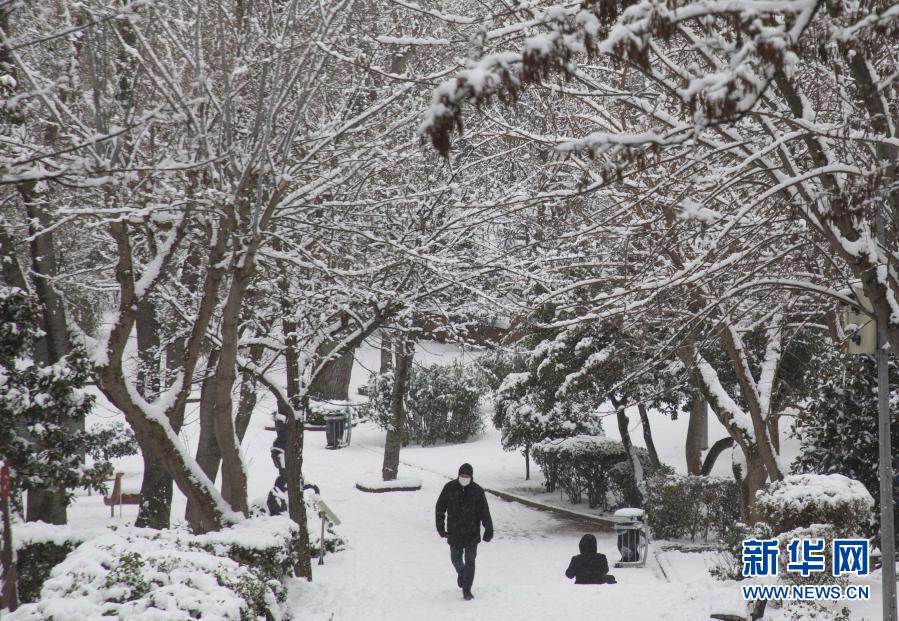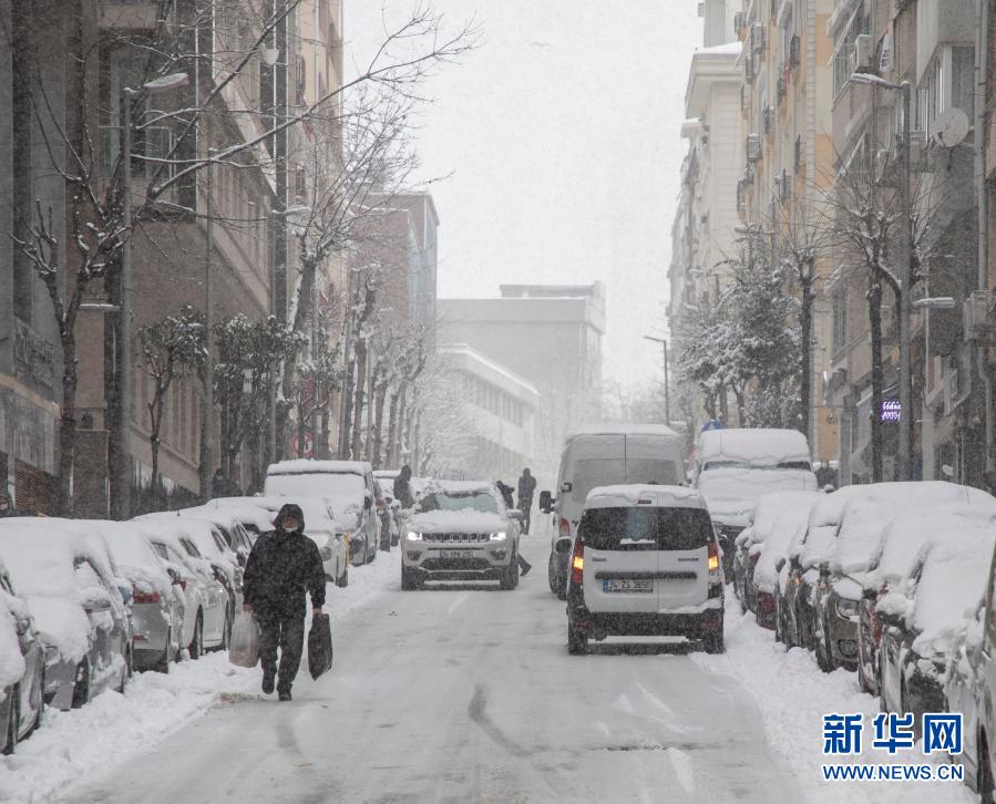 2月17日,市民在土耳其伊斯坦布尔冒雪出行。新华社发(奥斯曼·厄尔萨尔摄)