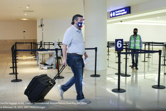 迫于压力,克鲁兹第二天搭航班回国。路透社的标题玩了一把文字游戏:《在墨西哥之行遭遇暴风雪般的批评后,参议员克鲁兹飞回冰封的得克萨斯》,遣词造句透着嘲讽。