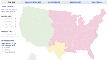 △美国电网主要由东部、西部和得州电网组成