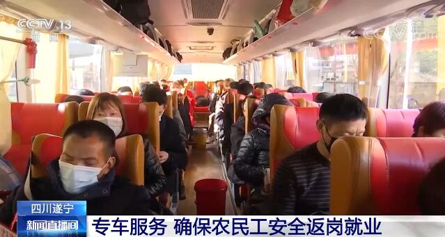 四川省遂宁市农民工服务中心主任 梁志勇:到广东、新疆、浙江、福建务工的农民工朋友相对多,我们将开展专车专列或者免费包机行动,实时地送农民工朋友返岗,让他们出得了家门、上得了车门、进得了厂门。