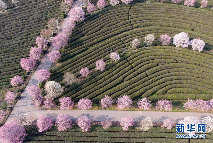 在江西省南昌县凤凰沟景区,游客在春游赏花(2月23日摄,无人机照片)。新华社记者 彭昭之 摄