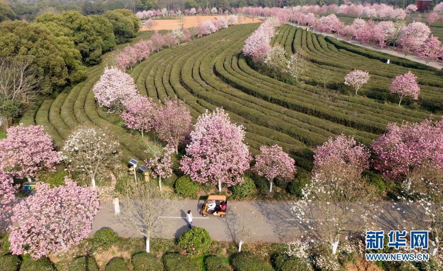 在江西省南昌县凤凰沟景区,玉兰花竞相绽放(2月23日摄,无人机照片)。新华社记者 彭昭之 摄