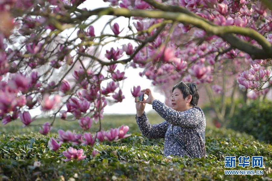 近日,随着气温回升,位于江西省南昌市南昌县凤凰沟的大片玉兰花竞相绽放,春意盎然,吸引游客前往春游观赏。