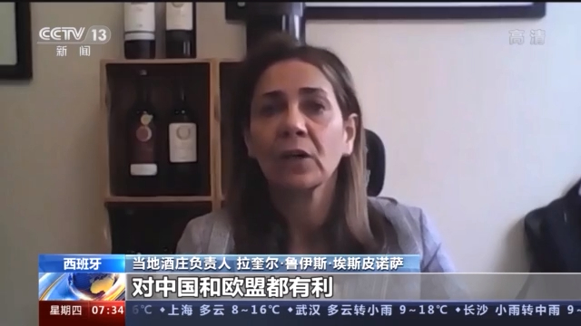 当地酒庄负责人 拉奎尔·鲁伊斯·埃斯皮诺萨:我们认为《中欧地理标志协定》,对双方都有好处,对中国和欧盟都有利。我们有拉里奥哈产区的产品,这个协定可以证明,我们的葡萄酒是高质量的,这一类协定是确认品牌价值的一种方式,对于我们来说是有好处的,因为可以增加营收,并且在世界范围内传达自己的红酒品牌的信息。