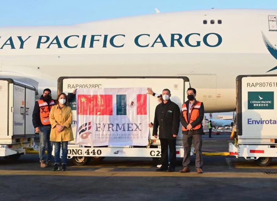 当地时间3月12日上午,第三批次的中国科兴新冠疫苗的货运飞机降落在墨西哥城国际机场。墨西哥外交部长埃布拉德通过其社交平台账户对中国以及科兴公司的支持和帮助表达了感谢。