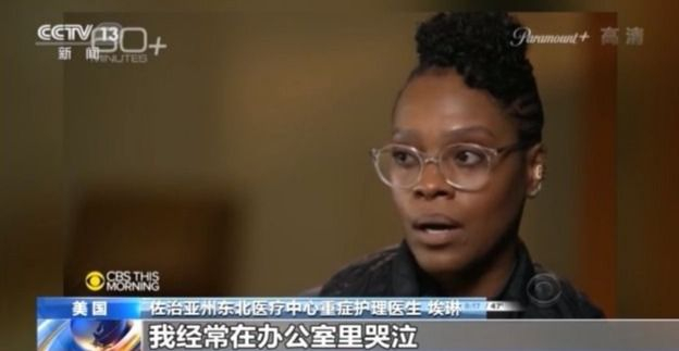 美国佐治亚州东北医疗中心重症护理医生 埃琳:每天(都在崩溃),花一分钟哭一场对我们来说太平常了。我经常在办公室里哭泣。你所做的一切努力都是为了让患者好转,但很多时候 (患者)并没有好转。病人奄奄一息的时候我们却无能为力,这让我们感到伤心。(并且)这样的情况一再发生,这才是对我们心理造成伤害的原因。