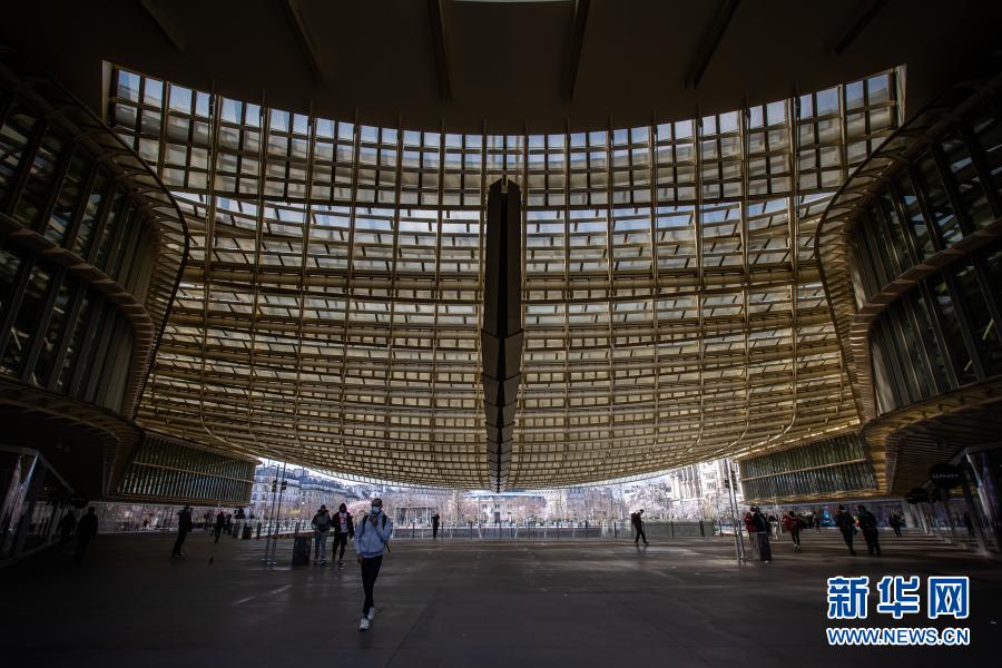 3月20日,在法国巴黎,人们走过一处关闭的购物中心。新华社发(奥雷利安·莫里萨尔摄)