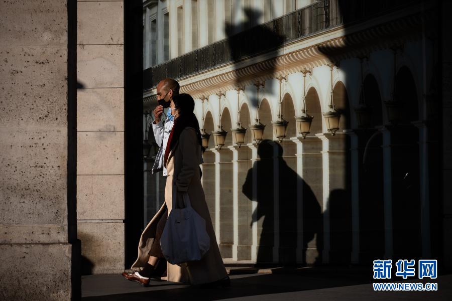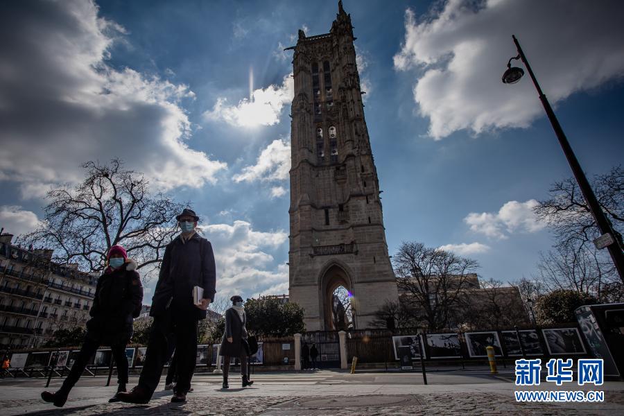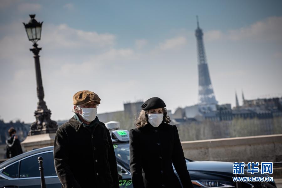 3月20日,在法国巴黎,人们戴着口罩出行。新华社发(奥雷利安·莫里萨尔摄)