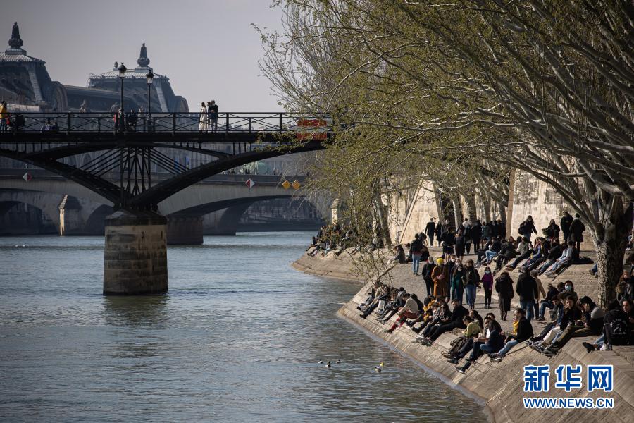 3月20日,人们在法国巴黎塞纳河畔休憩。新华社发(奥雷利安·莫里萨尔摄)