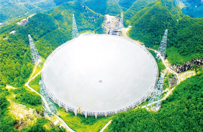 被誉为“中国天眼”的国家重大科技基础设施——500米口径球面射电望远镜(FAST)于2020年1月通过国家验收。“中国天眼”是目前世界上口径最大、灵敏度最高的单口径射电望远镜,投入运行以来已取得发现逾240颗脉冲星等一系列重大科学成果。2021年4月,“中国天眼”将对全球科学界开放使用。 中国科学院供图