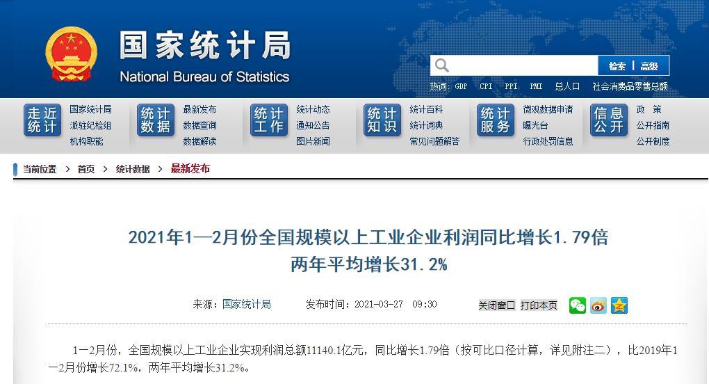 3月27日,国家统计局发布1—2月全国规模以上工业企业运营数据。