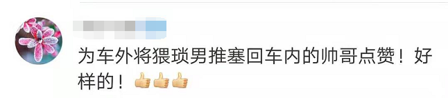 (见义勇为的)男士是自己开车的,刚好停在公交车旁边,弄明白这个情况后,就把猥亵男子给推回去了。