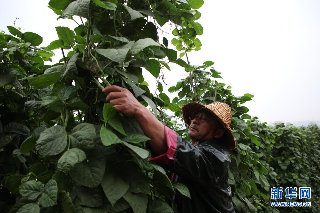 4月5日,云南省红河哈尼族彝族自治州建水县临安镇庄子河村委会东山寨村的农民在采摘四季豆。