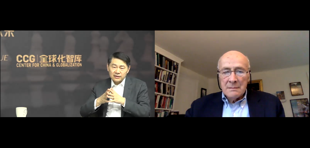 △4月28日,全球化智库(CCG)主任王辉耀与约瑟夫·奈进行视频对话。