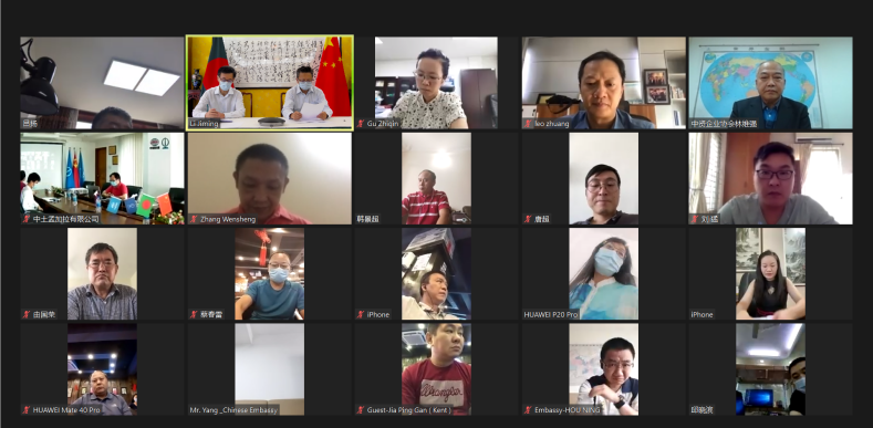 5月28日下午,"春苗行动"线上启动仪式暨在孟中国公民疫情防控联席会议在达卡举行,李极明大使做主旨讲话和动员,中资企业协会林维强会长、华联会庄立峰会长及部分志愿者代表出席。