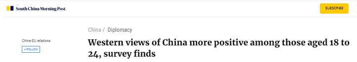 香港《南华早报》报道称,此次民调有一项结果十分值得关注,即欧美年轻一代更看好中国。在回答“如何看待中国在全球事务中的影响力”这一问题时,18至24岁年龄段的欧洲年轻人对中国普遍持正面评价,他们更愿意将中国视为合作伙伴,尤其是在法国、德国和英国。同一年龄段的美国年轻人也有61%对中国持正面评价。