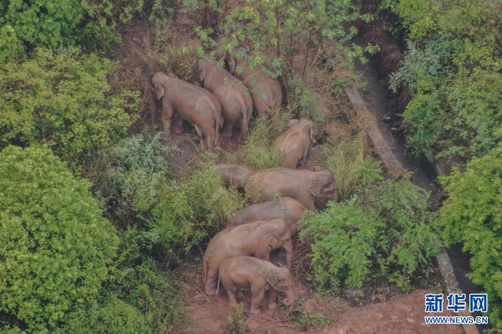 6月10日在玉溪市易门县十街乡拍摄的象群(无人机照片)。新华社发