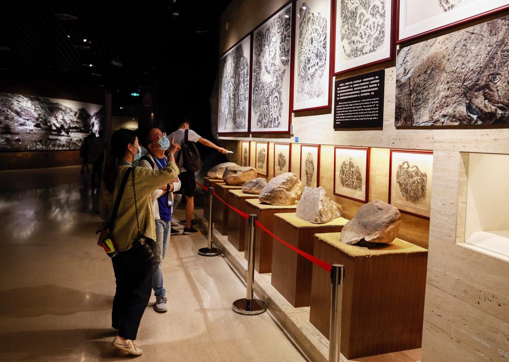 6月13日,参观者在宁夏博物馆参观宁夏岩画展。新华社记者 杨植森 摄