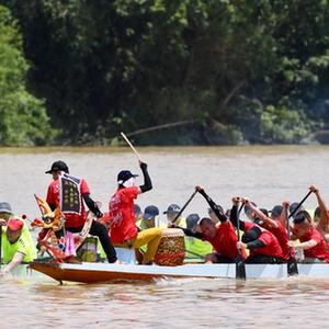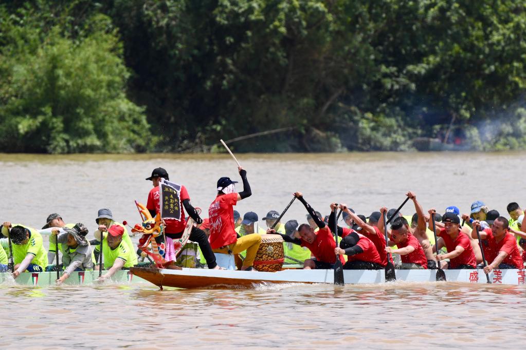 6月13日,在福州市闽侯县大樟溪南港段,两艘民间龙舟在端午竞渡。新华社记者 姜克红 摄