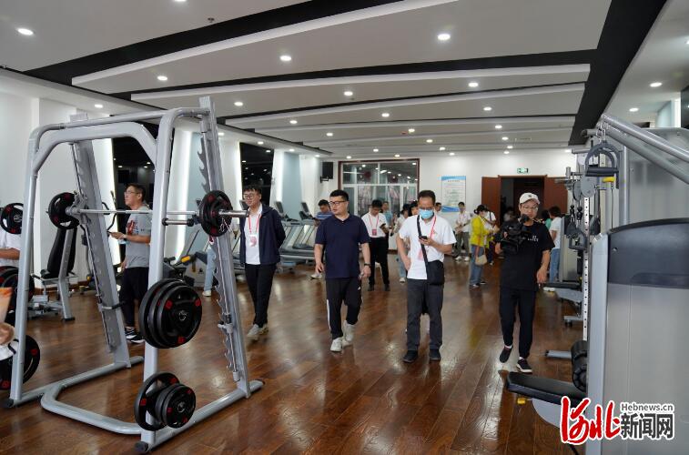 图为采访团参观白沙村体育馆健身房。 郭明明摄