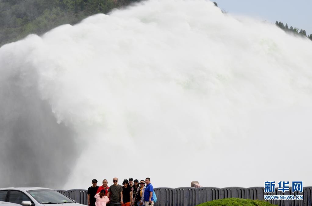 6月19日,游客在黄河小浪底水利枢纽工程出水口观看调水调沙场景。新华社发(苗秋闹摄)