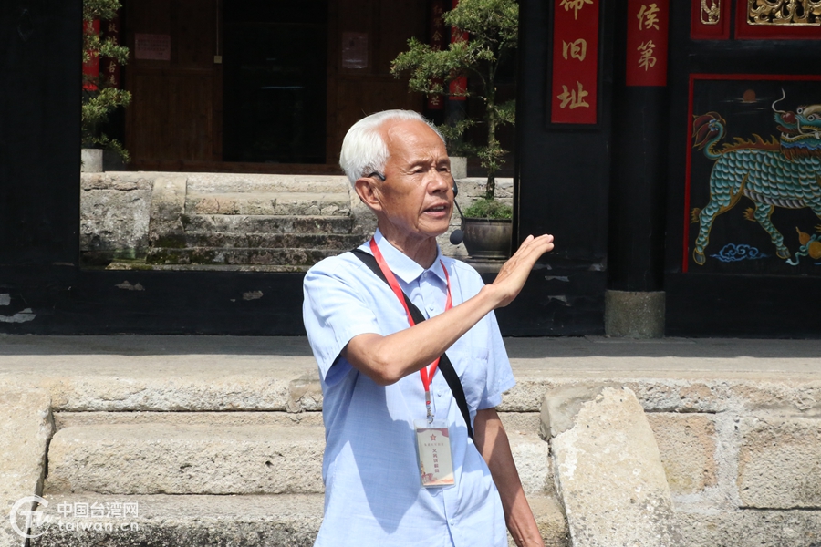 今年82岁的义务讲解员林兴阵向采访团讲述革命故事。