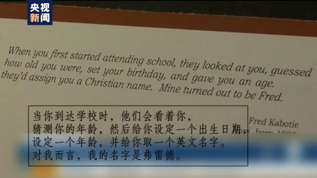 罗莎莉展示的一项资料上这样写道,“当你到达学校时,他们会看着你,猜测你的年龄,然后给你设定一个出生日期,设定一个年龄,并给你取一个英文名字(Christian name)。对我而言,我的名字是弗雷德。”