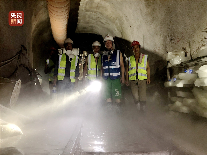 随着隧道不断向前掘进,让建设者备受煎熬的高地温随之而来。从2017年开始,隧道进口施工最前端的掌子面温度最高时达到43℃,洞内空气湿度接近100%,全隧采用巷道式通风,工作面的含氧量低,较洞口降低30%,相当于在海拔4000米以上的高原地区作业,高温高湿缺氧让常人难以忍受,人员和机械施工效率大幅降低。据统计,先后有1万多名建设者参与施工,实属罕见。