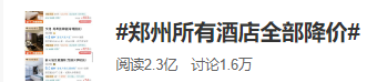 有网友爆料,昨晚郑州许多酒店不仅没有涨价,反而全部降价了!相关话题冲上热搜↓
