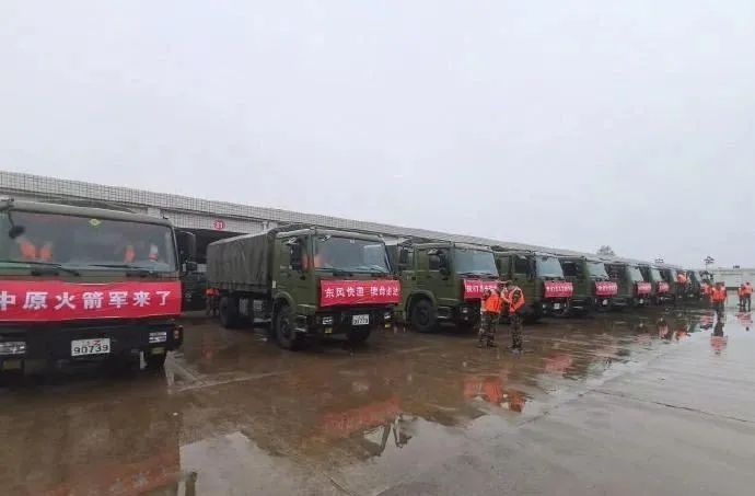 根据中部战区命令,驻豫火箭军某部近200人携带皮划艇、救生衣、锹、镐等必要救生器材完成集结,奔赴郑州抢险救灾。后续大型救灾设备根据要求,做好救灾准备随时出动。